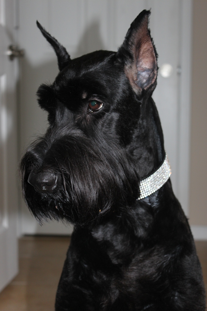 Danita suggested a lavender background, which looks really, really elegant with Madison's shiny black coat. Madison is soaking up the admiration in her own modest and serious German way.